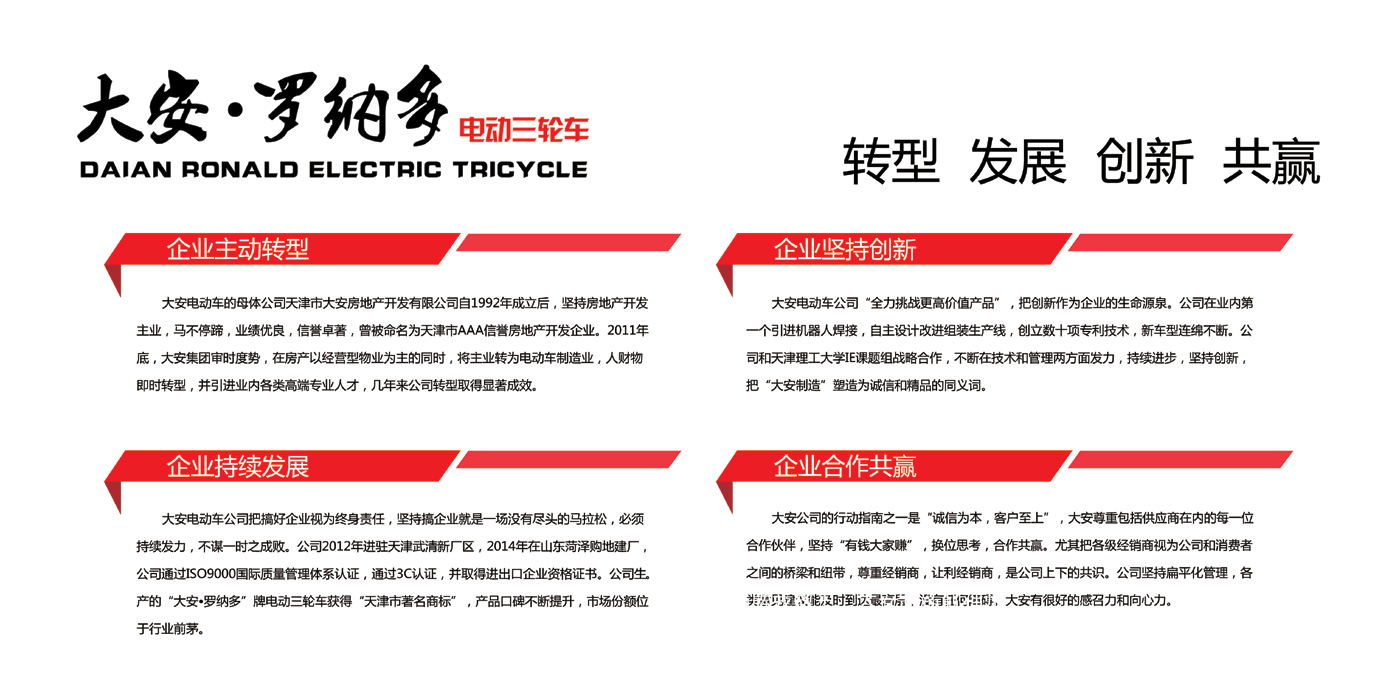 天津大安電動(dòng)車有限公司 大安·羅納多電動(dòng)三輪車企業(yè)文化展板下載